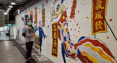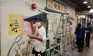Commissioned Artwork creation- Wall drawing by ADA Artist Apple Tong, So Tat Shing, Hui Pui Sin, Margaux Chan and Mary Cheng in Dignity Kitchen 19 May 2020 -
